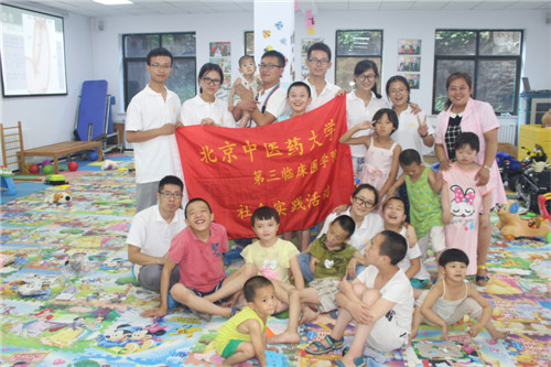 炎炎夏日,热情洋溢,北京中医药大学第三临床医学院暑期社会实践红领巾小分队在王国华老师的指导下,响应学校关于“与祖国同行,筑青春梦想”主题社会实践活动的号召,于7月29日赴承德社会福利院进行为期3天的“关爱残障儿童,推广中医药小儿推拿”医疗卫生服务暑期社会实践活动。