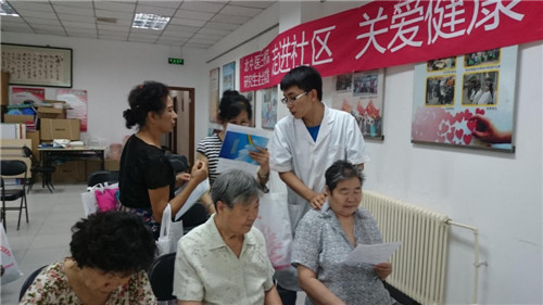 2015年8月7日,第三临床医学院社会实践组来到了安华社区服务中心为安华社区、安华西里社区以及黄寺、裕民路社区部分居民进行健康咨询,为居民耐心细致的检查、量血压、测血糖、分析病情,讲解注意事项,认真解答居民们关于常见病、多发病的预防诊治及愈后疑难问题。针对检查中发现的问题,我们进行了详细的记录,还为居民们建立了健康档案,通过这些健康档案的反馈,让我们也了解到了当今医疗大环境中,普遍存在的一系列问题。