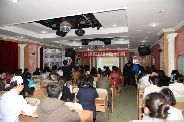 2015年11月9日下午,第三附属医院举办了2015年第三期入党积极分子培训班。党委书记杨晋翔参加开班仪式,并为学员上了第一堂学习党的十八届五中全会精神的党课,医院76名入党积极分子参加了此次培训。