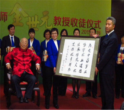 2015年11月18日下午3:30时,庄严而隆重的“国医大师金世元教授第十三批收徒仪式”在京举行。中华中医药学会、中国中药协会、中国农工民主党、北京市中医管理局、北京中医药学会等部门领导及相关单位领导应邀出席仪式。我院刘金民院长也应邀出席,药学部孔祥文主任荣幸地成为金世元教授第十三批弟子之一。
